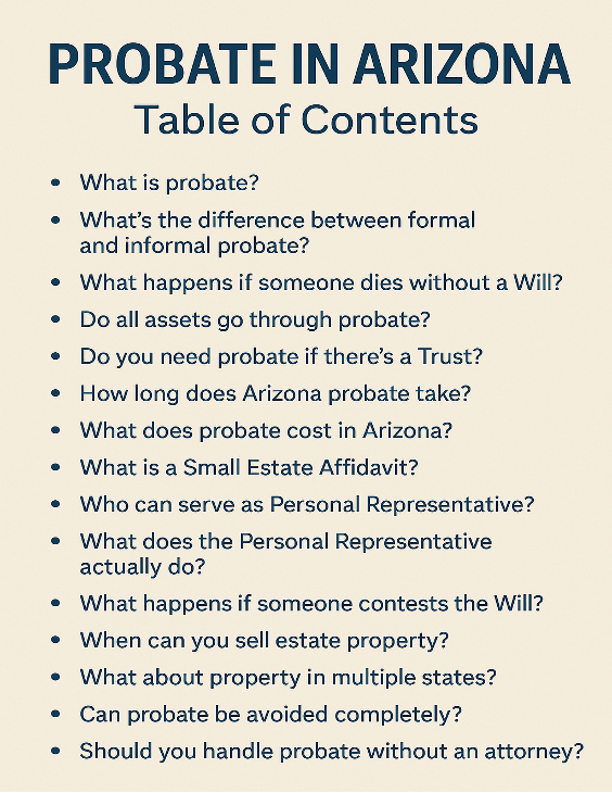 Legal Disclaimer: This information is for educational purposes only and does not constitute legal advice. Arizona probate law is complex and varies based on individual circumstances. Always consult with a qualified probate attorney for guidance specific to your situation.